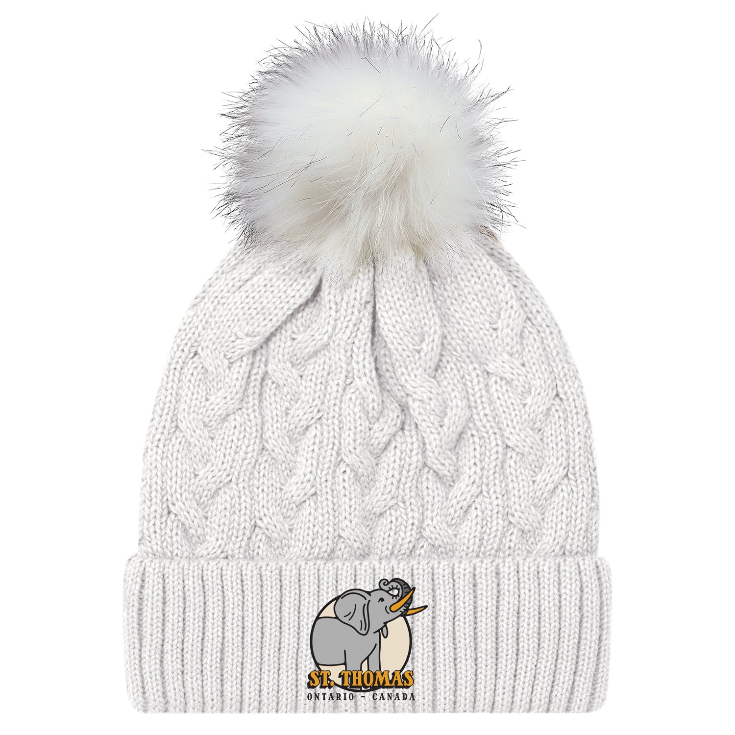 St. Thomas Ladies' Jumbo Cuffed Pom Knit Toque - White