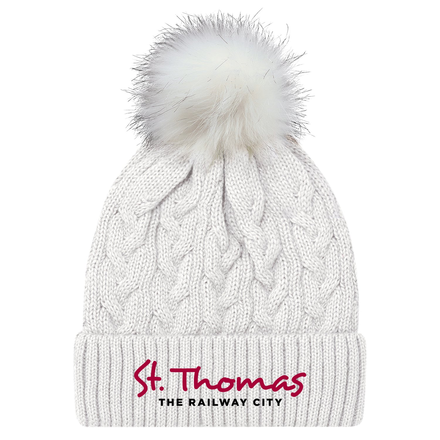 St. Thomas Ladies' Primary Cuffed Pom Knit Toque - White